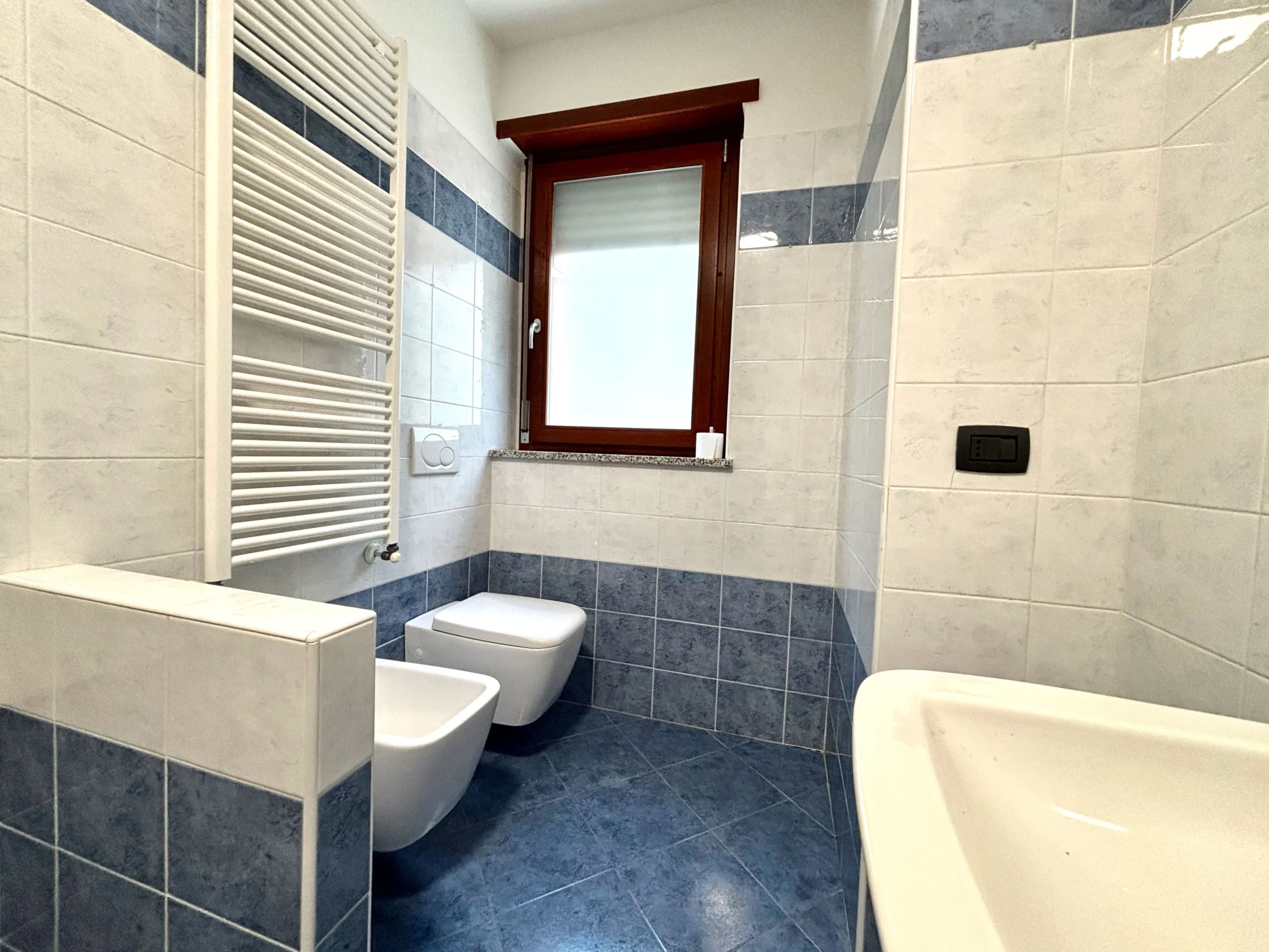 I due bagni sono entrambi spaziosi e completi: il principale con vasca è finestrato, mentre il secondo si colloca comodamente tra le due camere ed è dotato di doccia.