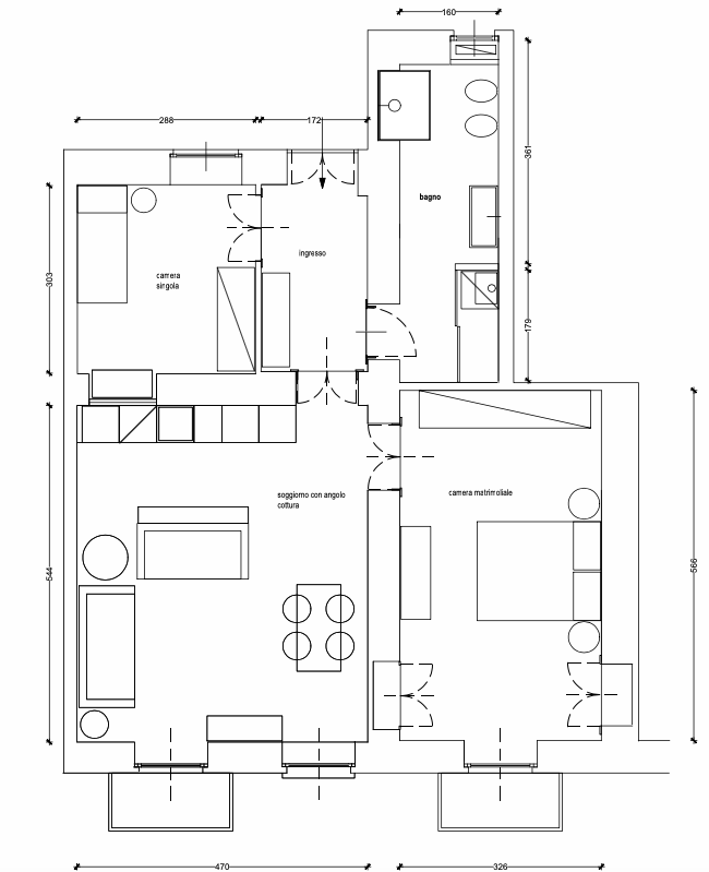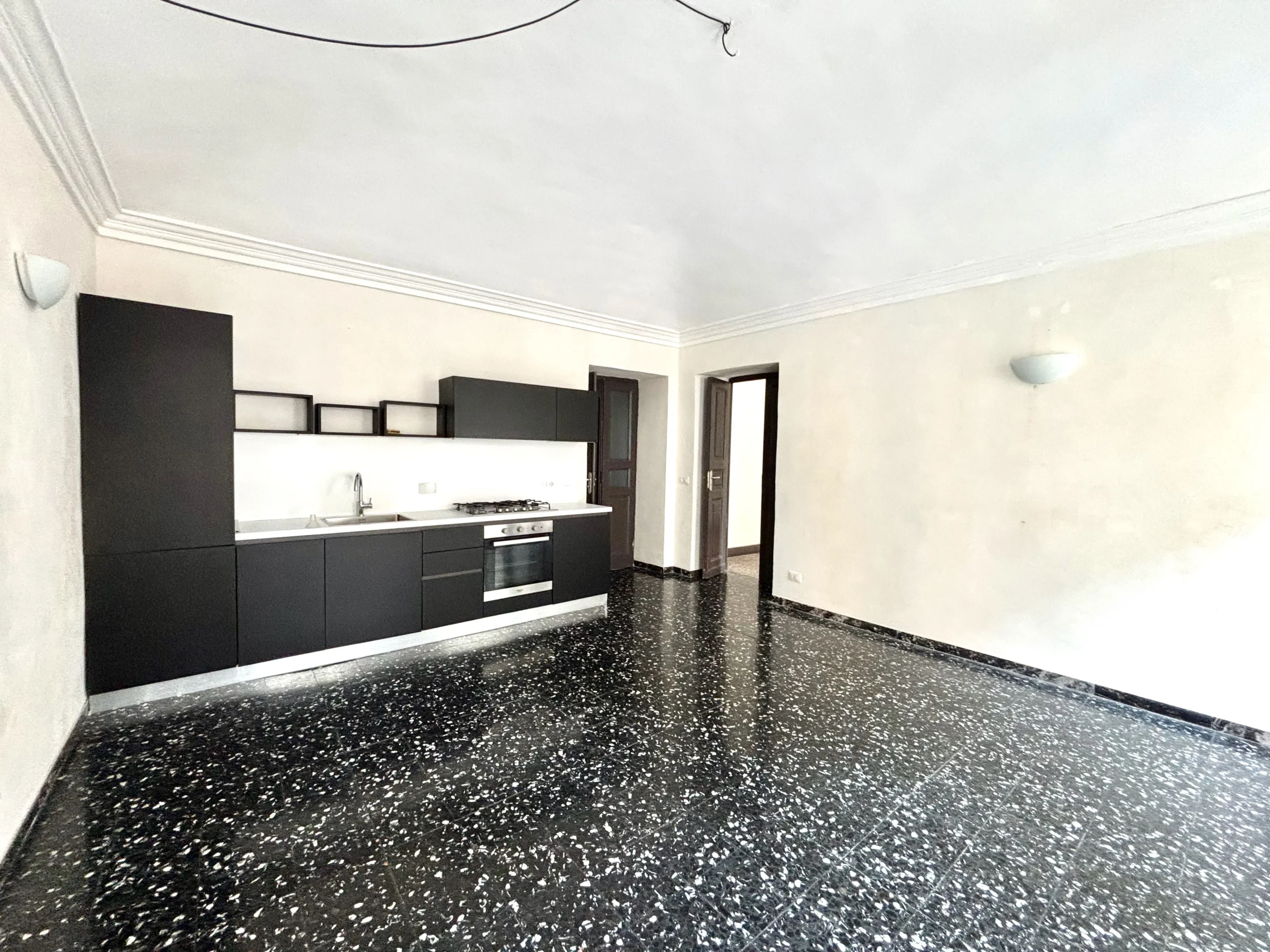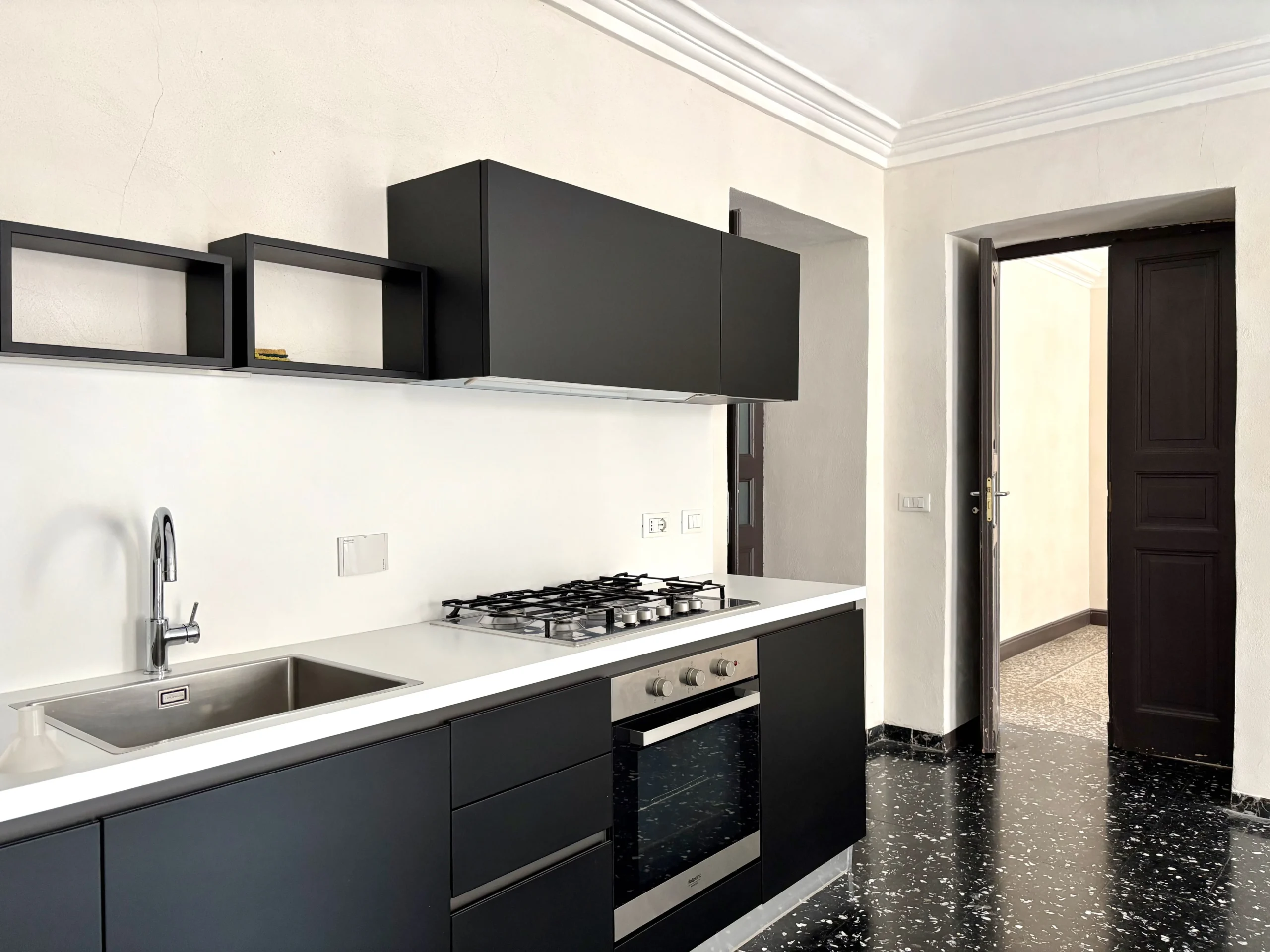 L’ingresso apre sulla spaziosa zona giorno con cucina lineare, completa e a vista. Molto luminosa grazie al doppio affaccio esterno (balcone e balconcino alla francese)