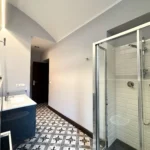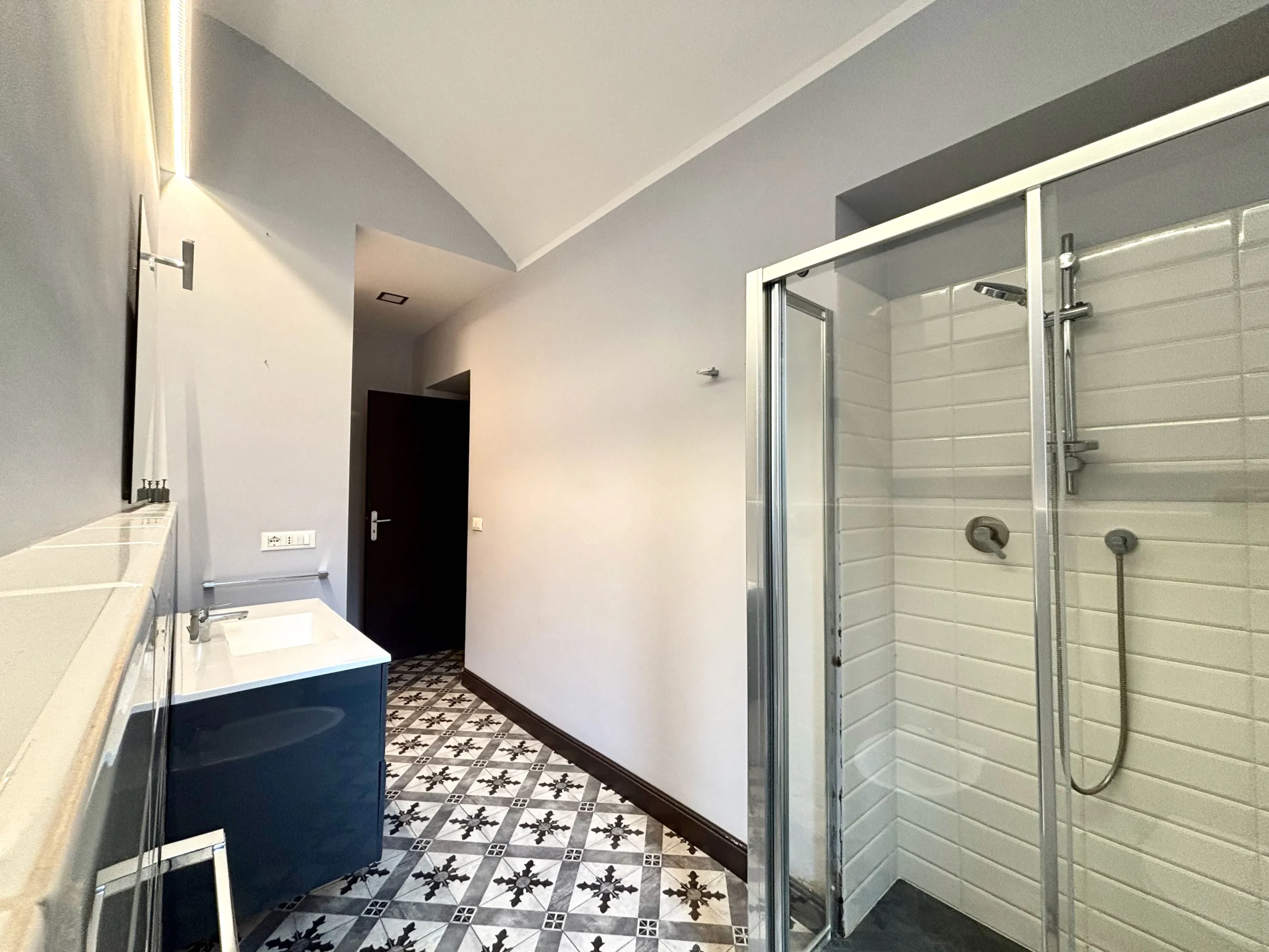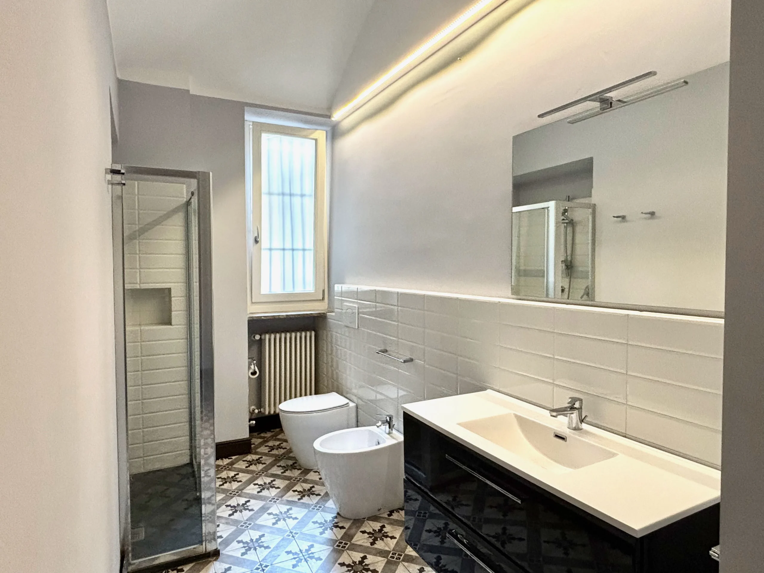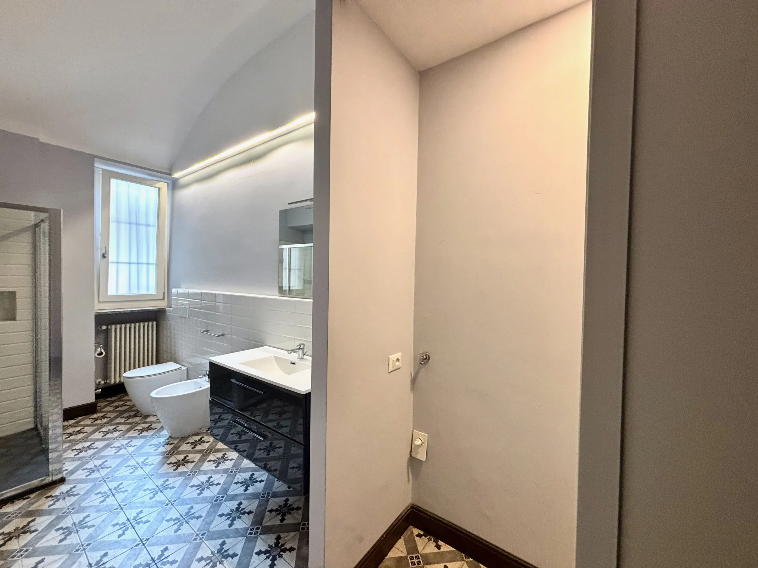 Completa la zona notte il bagno con doccia finestrato e, a scomparsa, un ampio vano lavanderia
