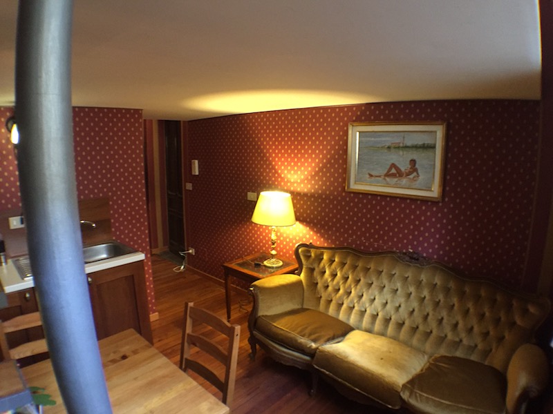 Il monolocale è completamente arredato e perfetto per uso transitorio. Pavimento in legno, bella scala con ferro e legno. Molto ben diviso. Ristrutturato.