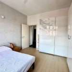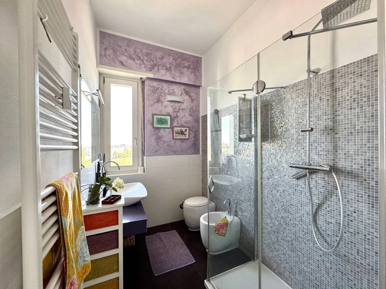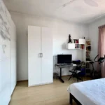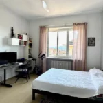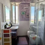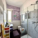 La zona notte ospita una spaziosa camera matrimoniale, con angolo studio perfettamente integrato, ideale per chi lavora da casa o ama dedicarsi alla scrittura, alla lettura, o al relax. Il bagno finestrato, decorato con delicate sfumature di lilla, è dotato di una comoda doccia.