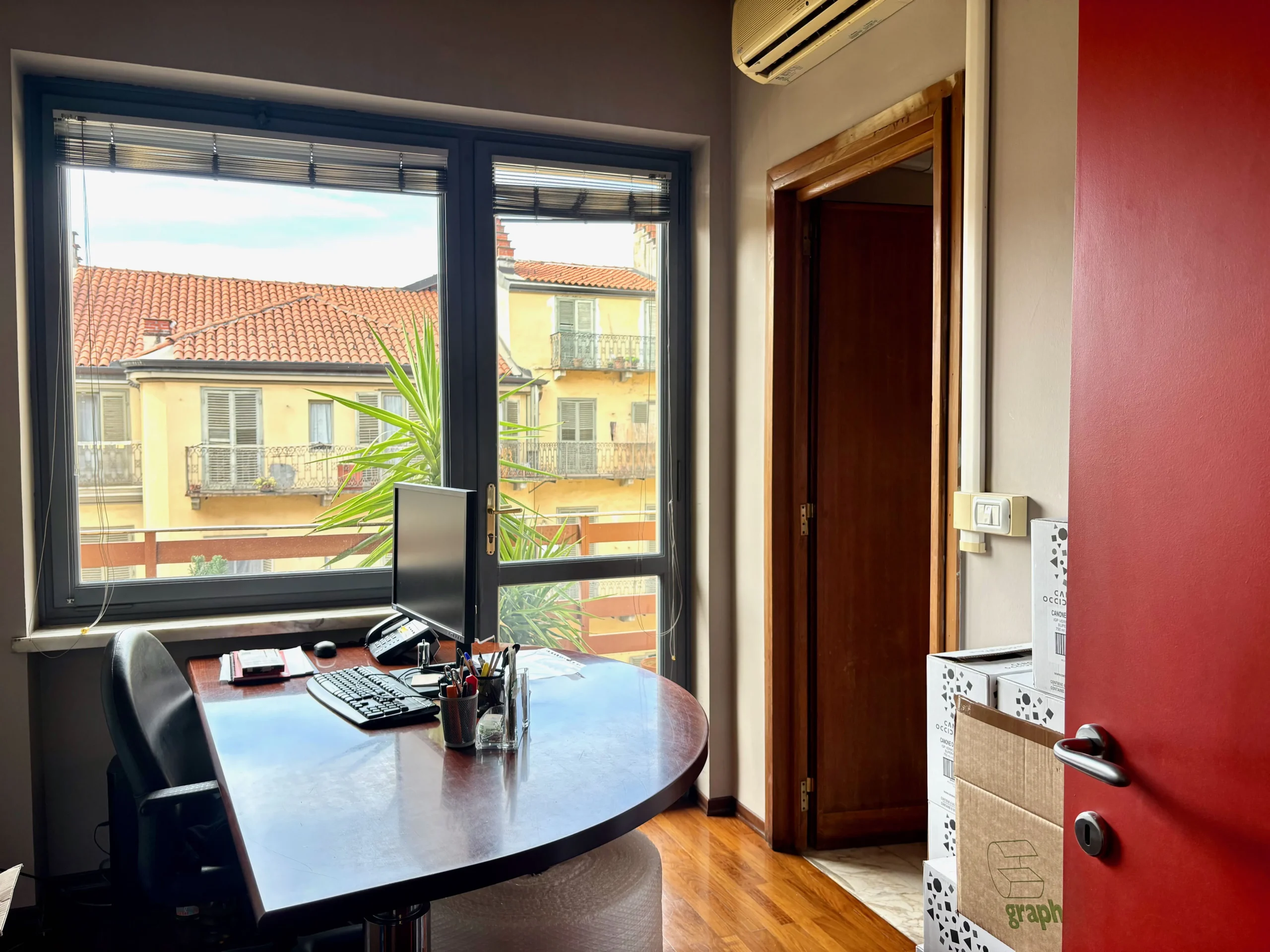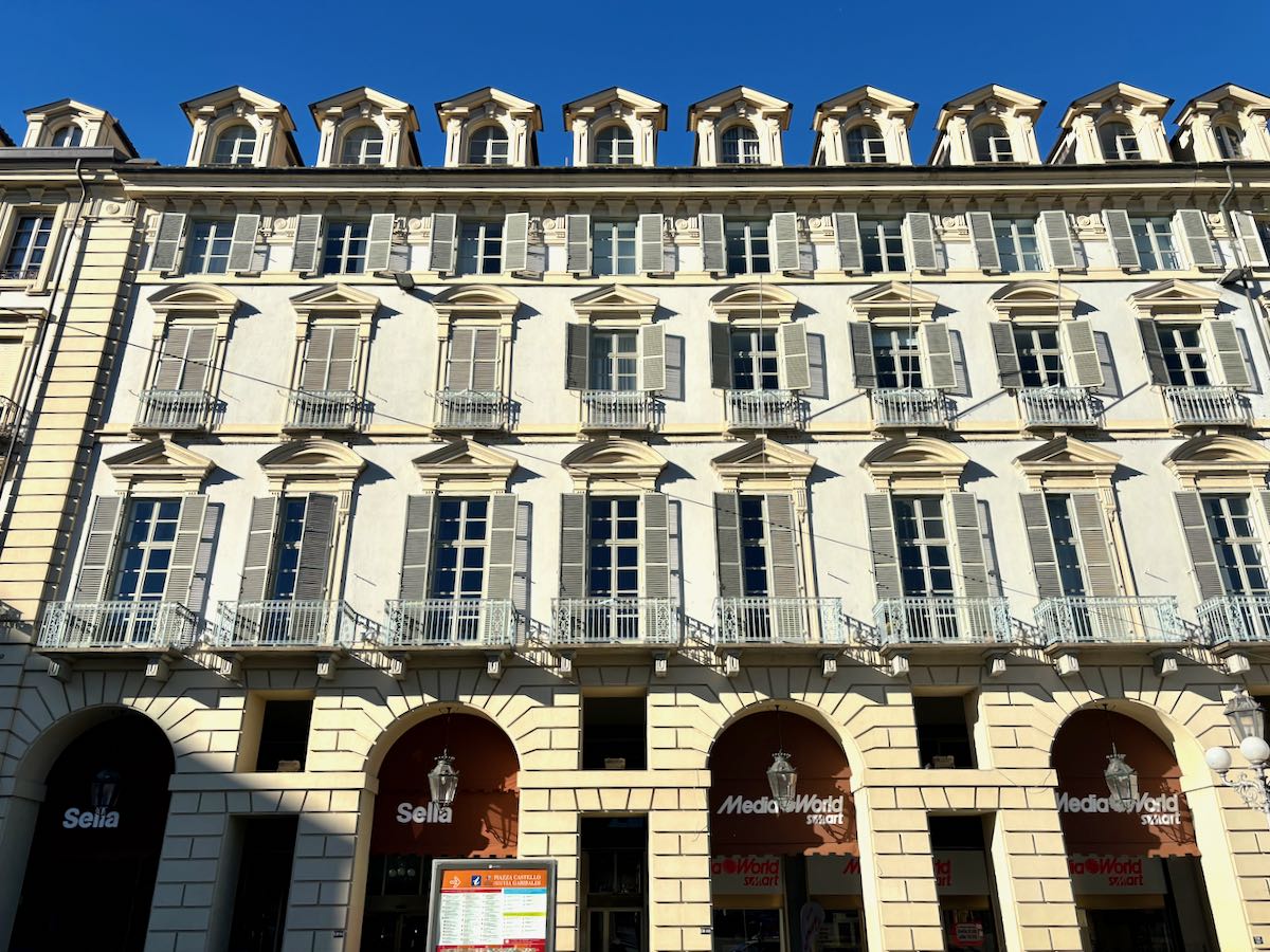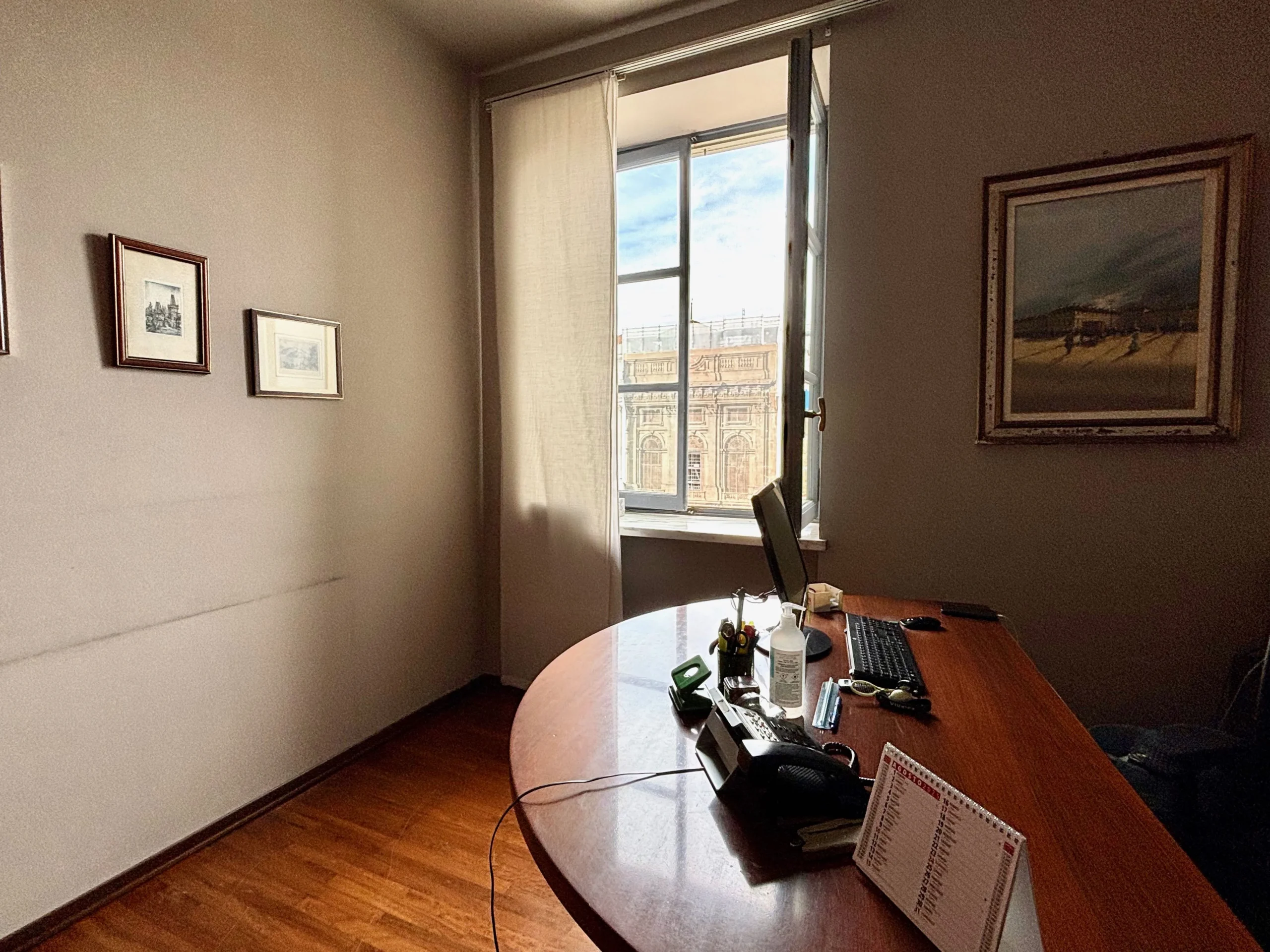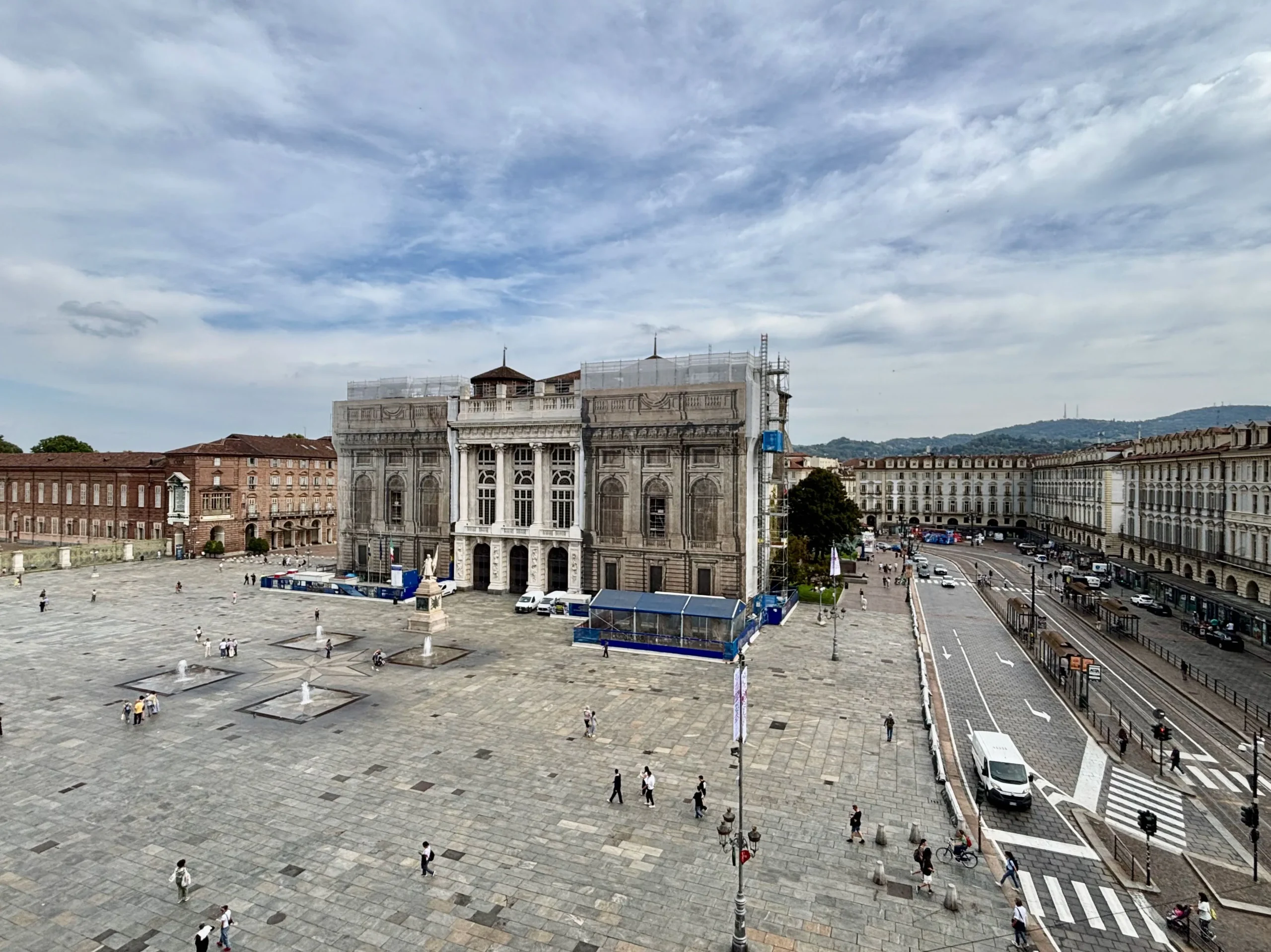 Un affaccio unico e suggestivo su Palazzo Madama, insieme al pavimento in legno scuro e alle altezze dei soffitti, conferiscono a questo immobile un carattere di assoluta rappresentanza.