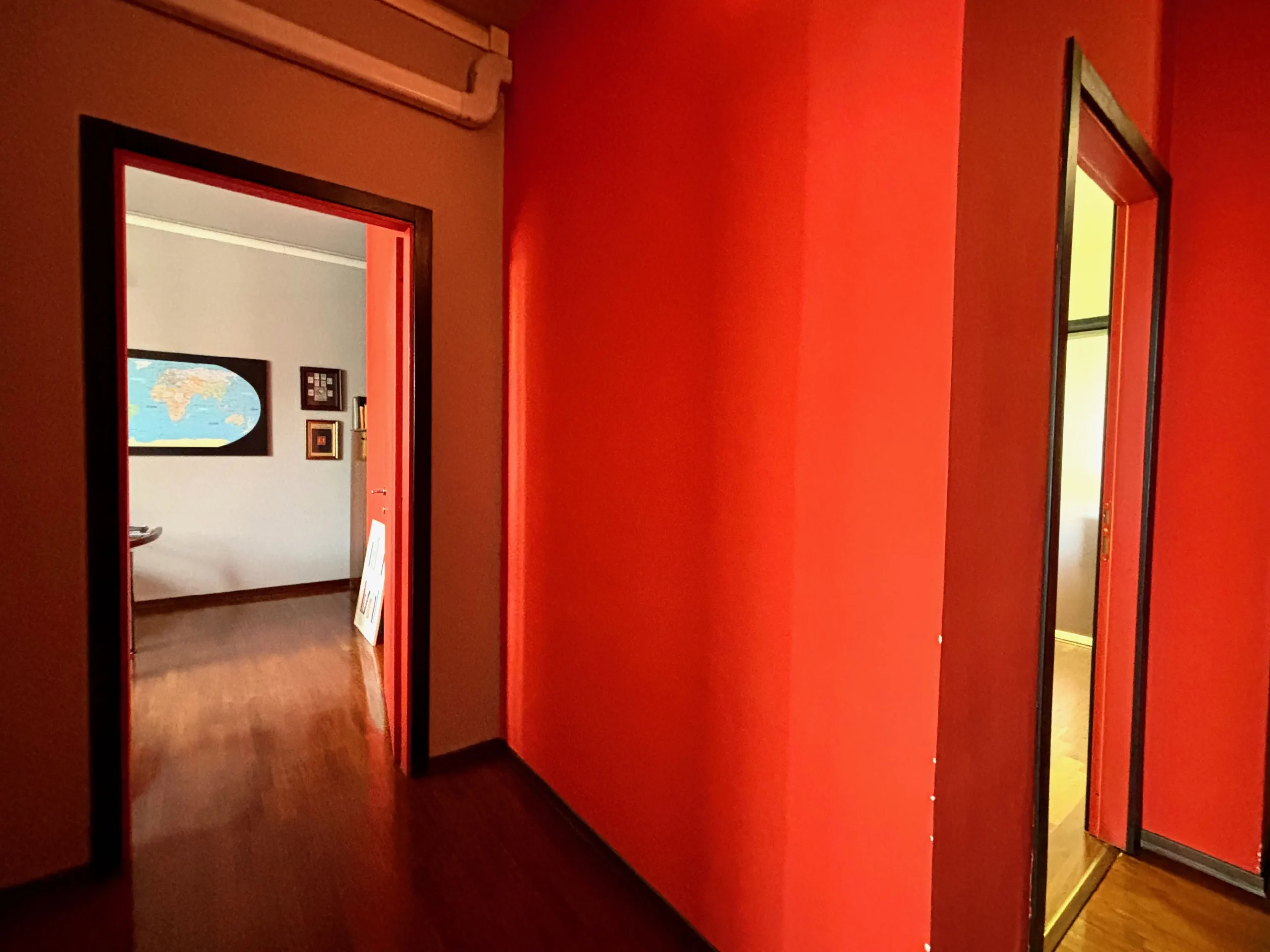 Completano la proprietà i doppi servizi di cui uno finestrato, due pratici locali ripostiglio e un’area server situata nei pressi del disimpegno centrale.