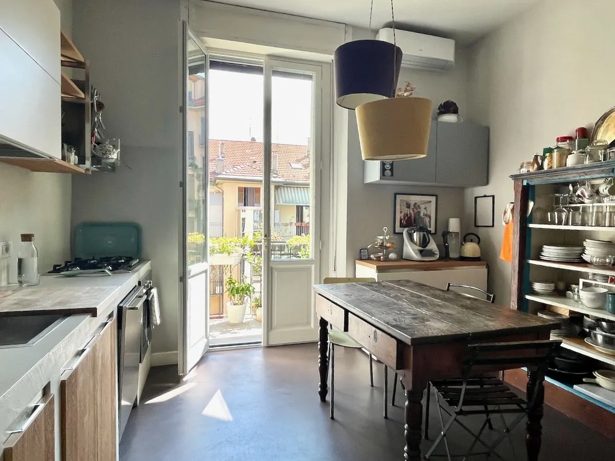 Ingresso, cucina, salone doppio, camera matrimoniale con cabina armadio, bagno, lavanderia con lavandino, balcone, soffitta e cantina. 98mq, terzo e ultimo piano senza ascensore, riscaldamento centralizzato con valvole, aria condizionata. Via Santa Giulia 0 int. 2, Torino