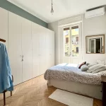 La zona notte è composta da una silenziosa camera da letto matrimoniale collocata sul lato interno dell’edificio con la sua cabina armadi e del primo bagno