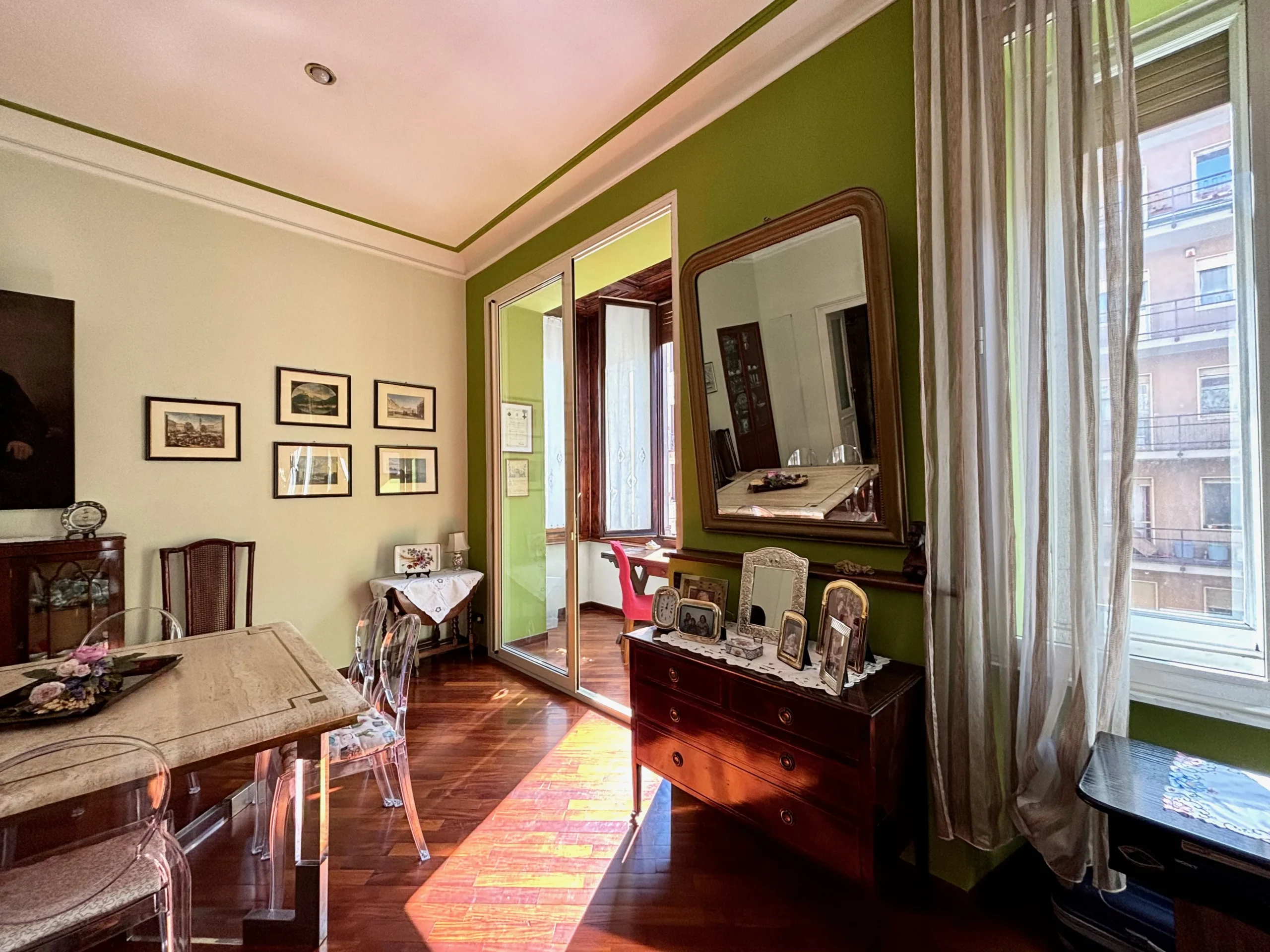 In elegante stabile degli anni Quaranta, al secondo piano con ascensore, proponiamo in vendita un ampio appartamento di 183 mq dal fascino classico ma dal taglio molto attuale.