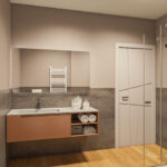 Dal lato opposto si trovano i due bagni: quello padronale finestrato e dotato di vasca da bagno e doccia, mentre quello di servizio dotato di sola doccia.
