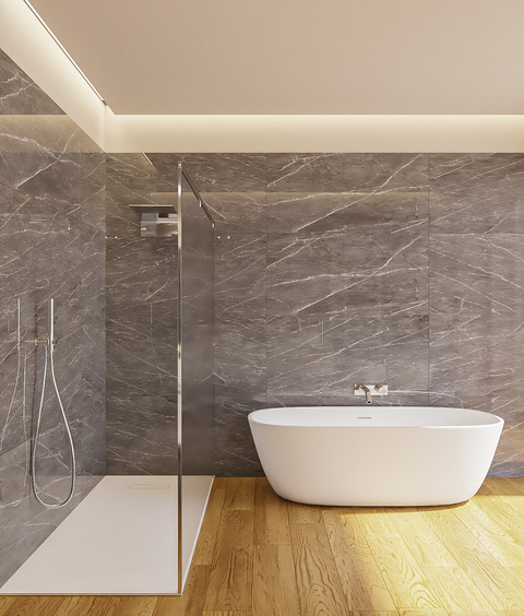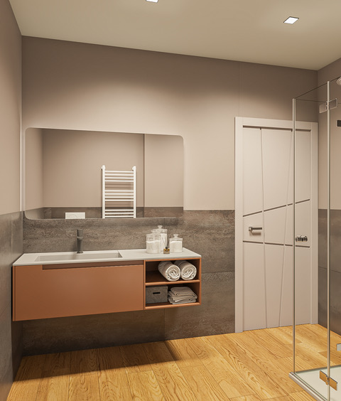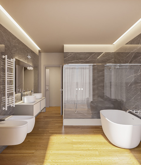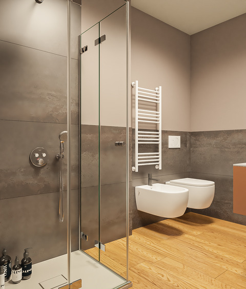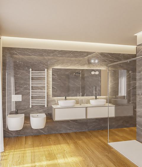 Dal lato opposto si trovano i due bagni: quello padronale finestrato e dotato di vasca da bagno e doccia, mentre quello di servizio dotato di sola doccia.