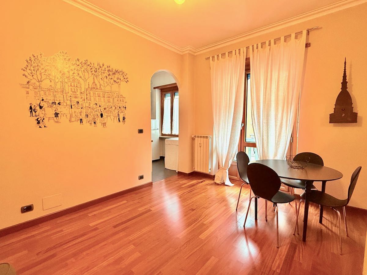 Ingresso, soggiorno, angolo cottura, camera da letto con cabina armadi, bagno, balcone, cantina. Secondo piano senza ascensore, riscaldamento centralizzato. Via Reymond 13, Torino