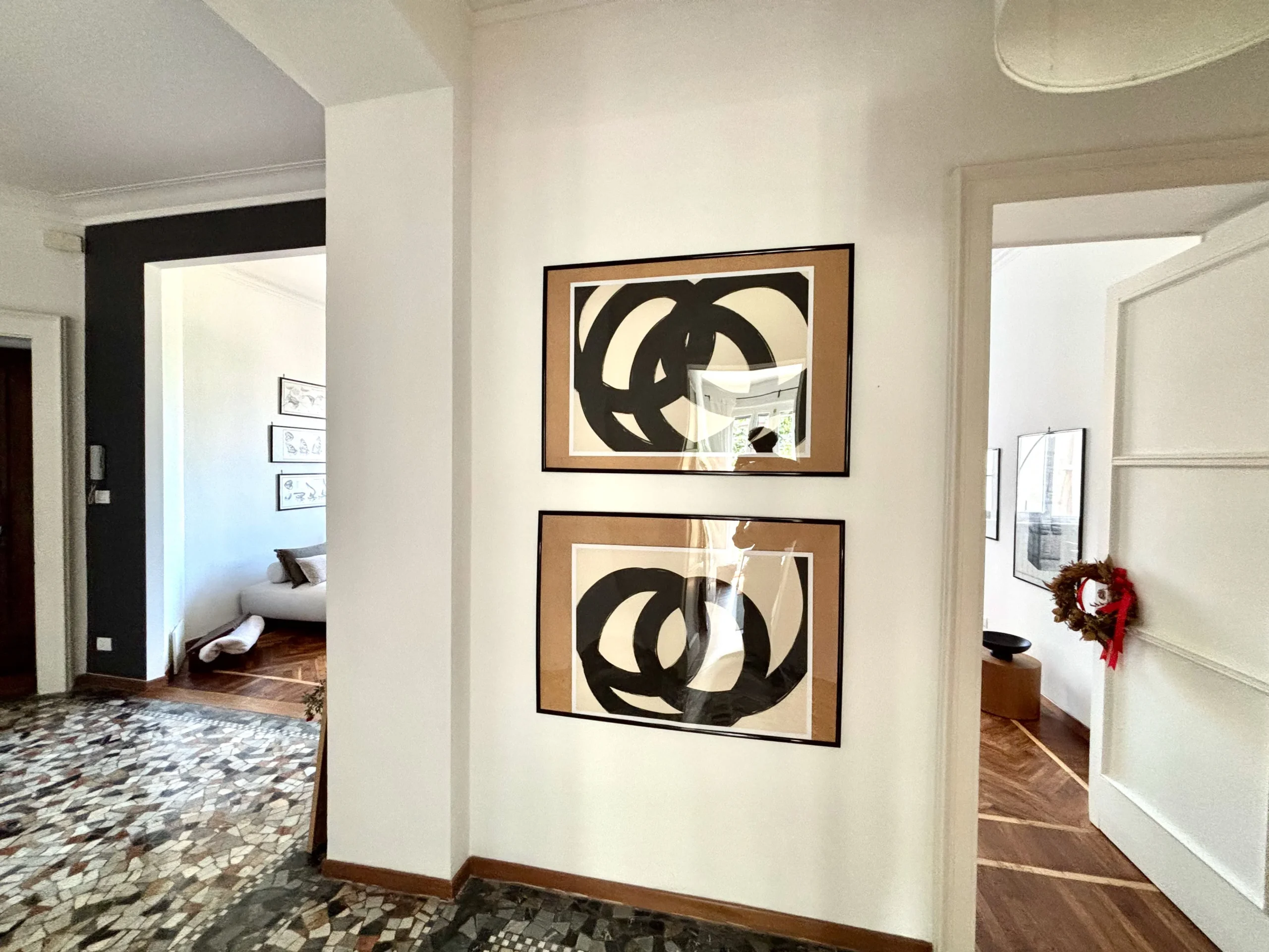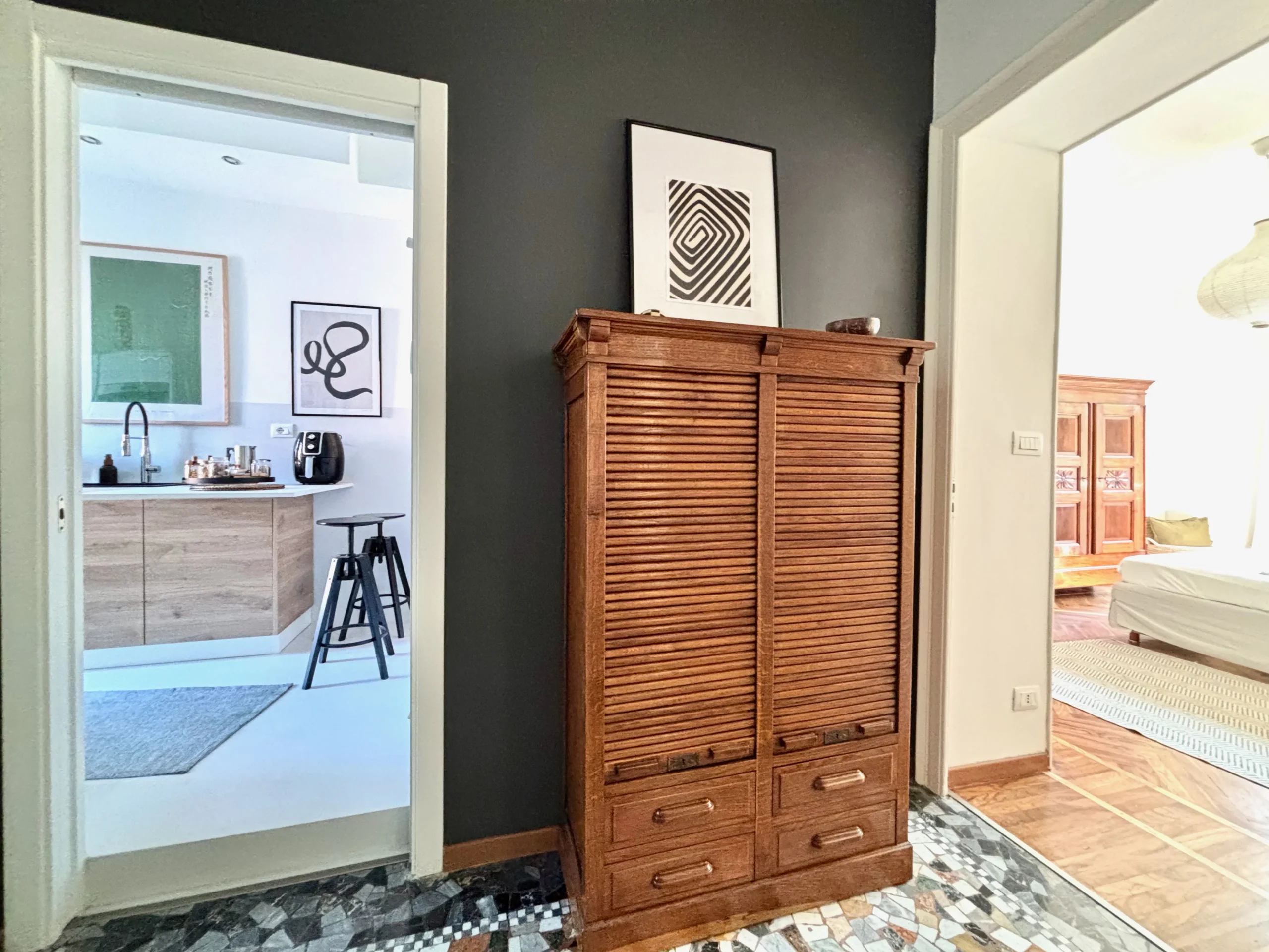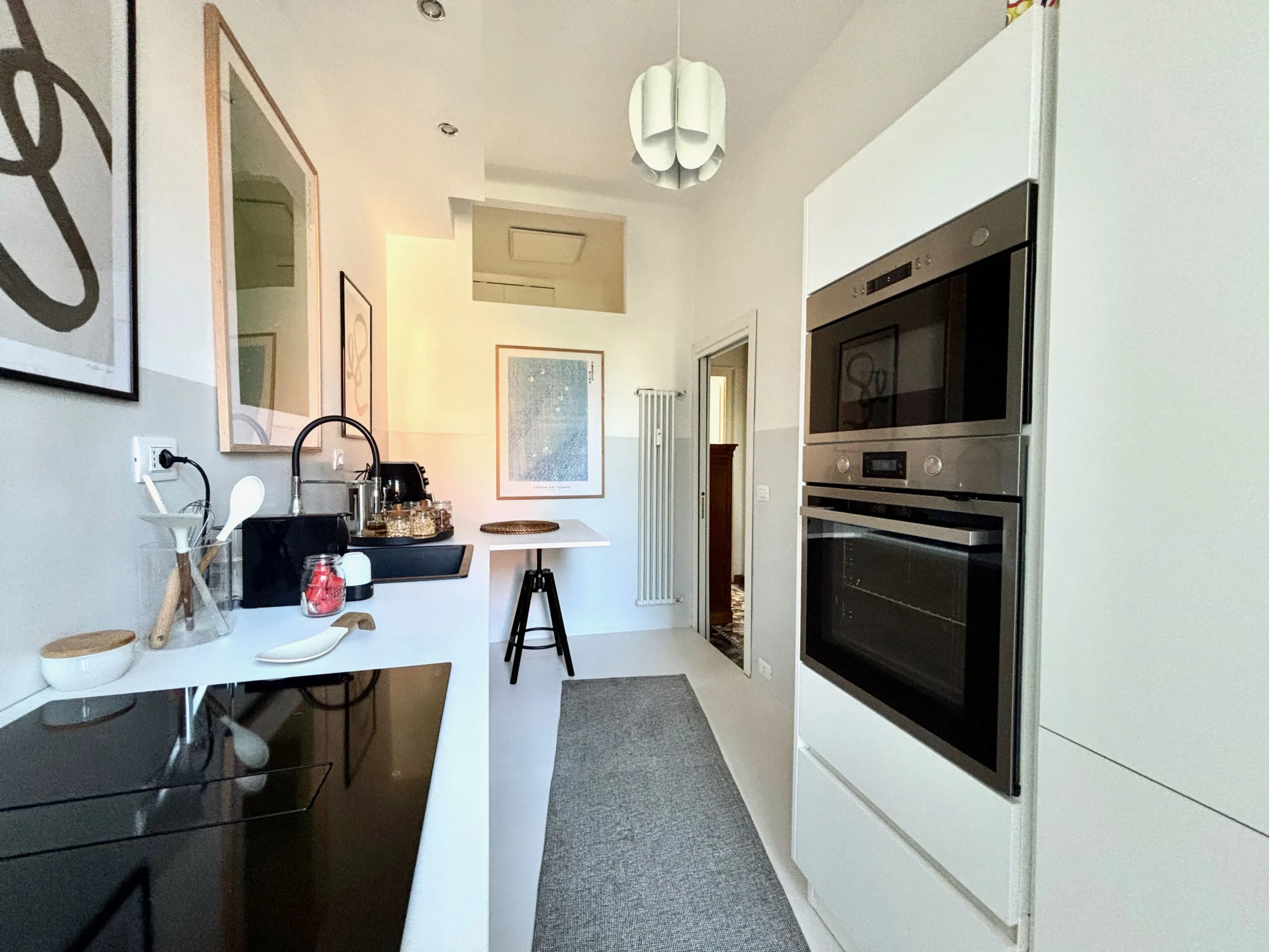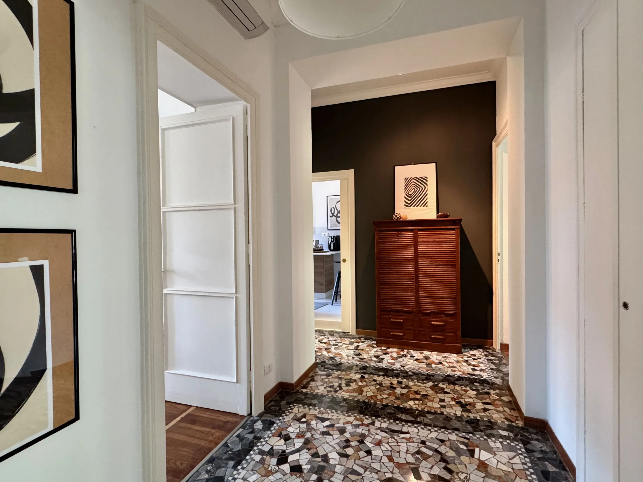 Il corridoio ampio e centrale rende questo appartamento aperto e arioso, ogni spazio comunica con questa parte della casa.