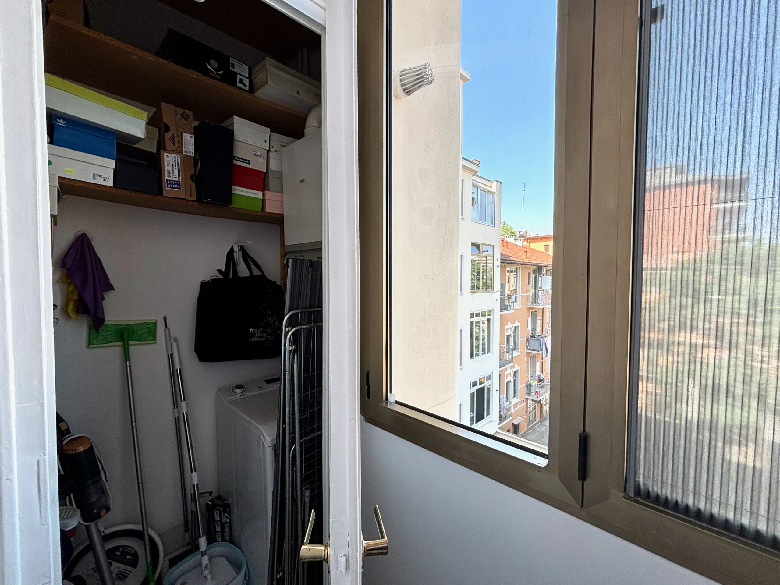 La cucina è completa, durante la ristrutturazione si è lavorato sull’aspetto funzionale degli spazi con tagli razionali perfettamente sfruttabili. Collegato alla cucina il balcone verandato con lo spazio lavanderia e sgabuzzino. L’affaccio interno è ampio e arioso.