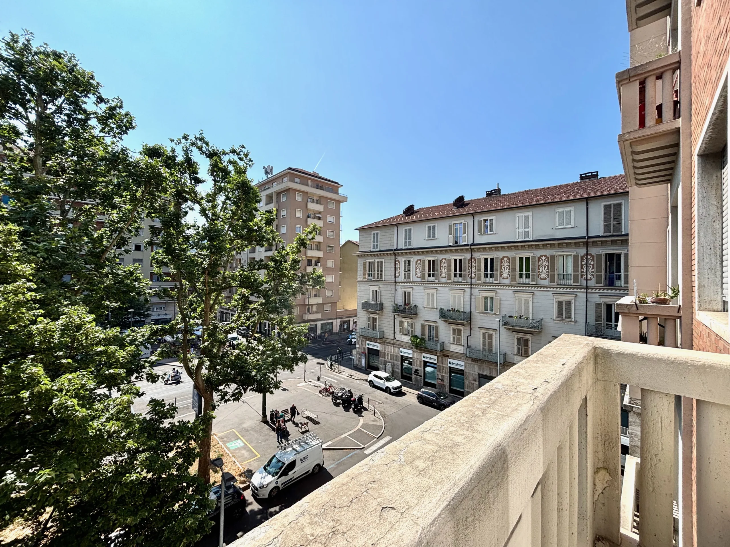 Luminoso appartamento composto di ingresso, salone doppio, cucina, due camere, due bagni, due balconi, cantina. Terzo piano con ascensore, 130 mq, completamente ristrutturato nel 2022. Piazza Nizza 48, Torino.
