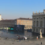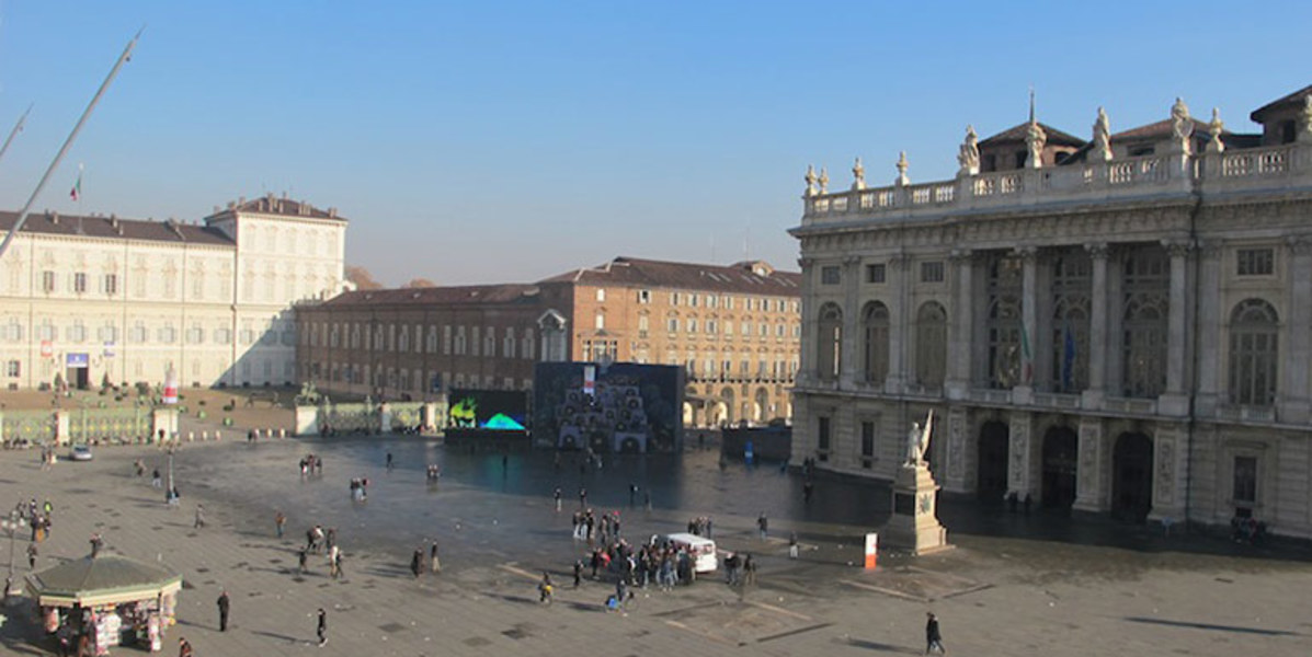 Vista magnifica su Piazza Castello. Tre ingressi, cinque stanze, quattro disimpegni archivio, servizio. Balcone interno cortile e balconi sulla piazza.